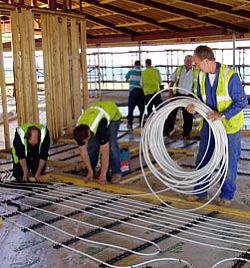 De grotere flexibiliteit van de nieuwe JG Speedfit Layflat Polybutyleen barri�re buis zorgt voor een makkelijk en zorgeloos verwerking van het vloerverwarmingssysteem.